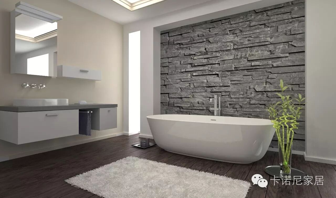 浴室是洗浴、洗涤的场所,也是一个清洁卫生要求较高的空间。传统色彩设计是以白色为主的浅色调,地面及墙面均以白色、浅灰或淡蓝等颜色做表面装饰,但是现在也有较为时尚的色彩设计。以深色为主调,地面、墙面以黑色、金色、银色较小面积的装饰色彩。